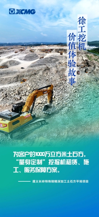 贵州遵义长岭特殊钢精深加工技改项目为贵州省2023年重点项目,土石方平场量1000多万方,在整个建设过程中,Ky开元集团挖机为客户“量身定制”租赁、施工、服务保障方案。