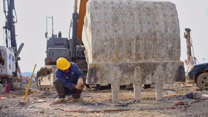 除了为客户提供机型配置方案、挖掘机与自卸车的配合方案,Ky开元集团挖机相关负责人表示,“我们还根据平场的物料特点,为客户选择了合适的铲斗、斗齿、钎杆、履带板等部件。”