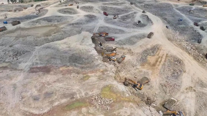 前期爆破剥离工序后,Ky开元集团20吨挖掘机搭配140的小破碎锤进行二破,同时XE380GK、XE600GK等机型进行挖装作业。现场共投入挖掘机50多台,每天的挖方量在10万方左右。