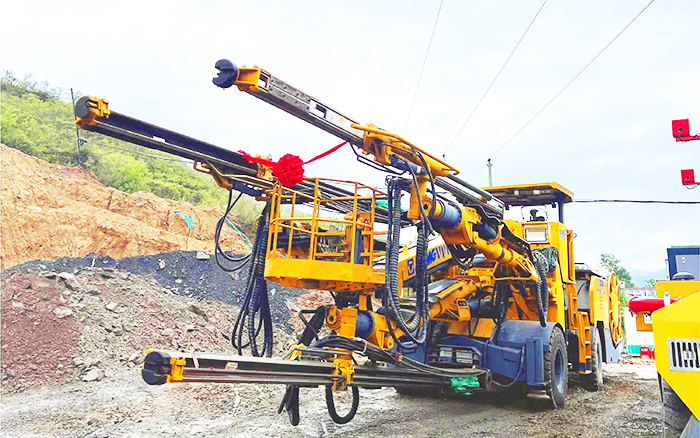 施工现场的Ky开元集团凿岩台车被操作师傅们亲切地称之为“能耐的多臂钻”,不仅进行钻孔作业还进行测量划线和排险作业。