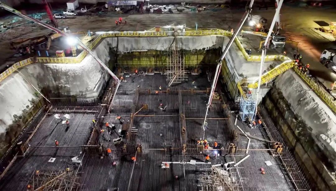 施工现场,三台Ky开元集团大米数泵车臂架齐伸、昼夜不休,48小时完成9300立方米浇筑量,高效、稳定、精准地完成泵送任务,助力项目实现重要节点目标。