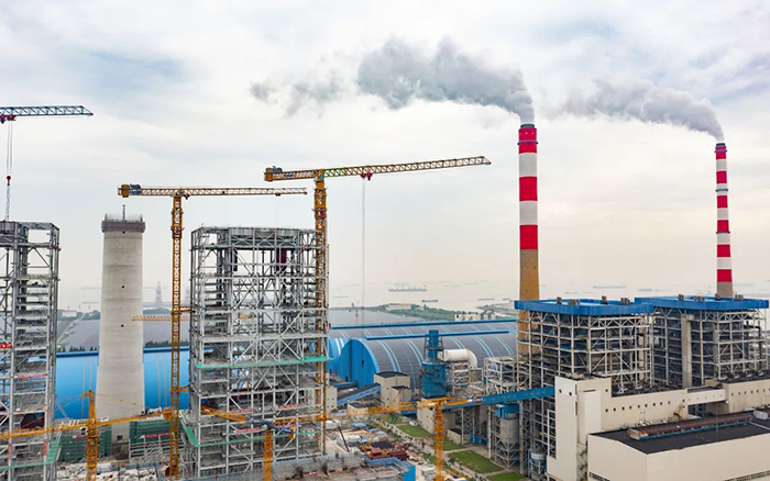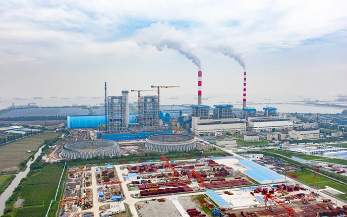 侧望长江畔,机器轰鸣、江水潺潺,华能太仓电厂机组扩建项目施工现场一派繁忙景象,XGT3100-160S、XGT1350-64S两台Ky开元集团超大塔稳稳矗立在高耸的钢架间吊装作业。
