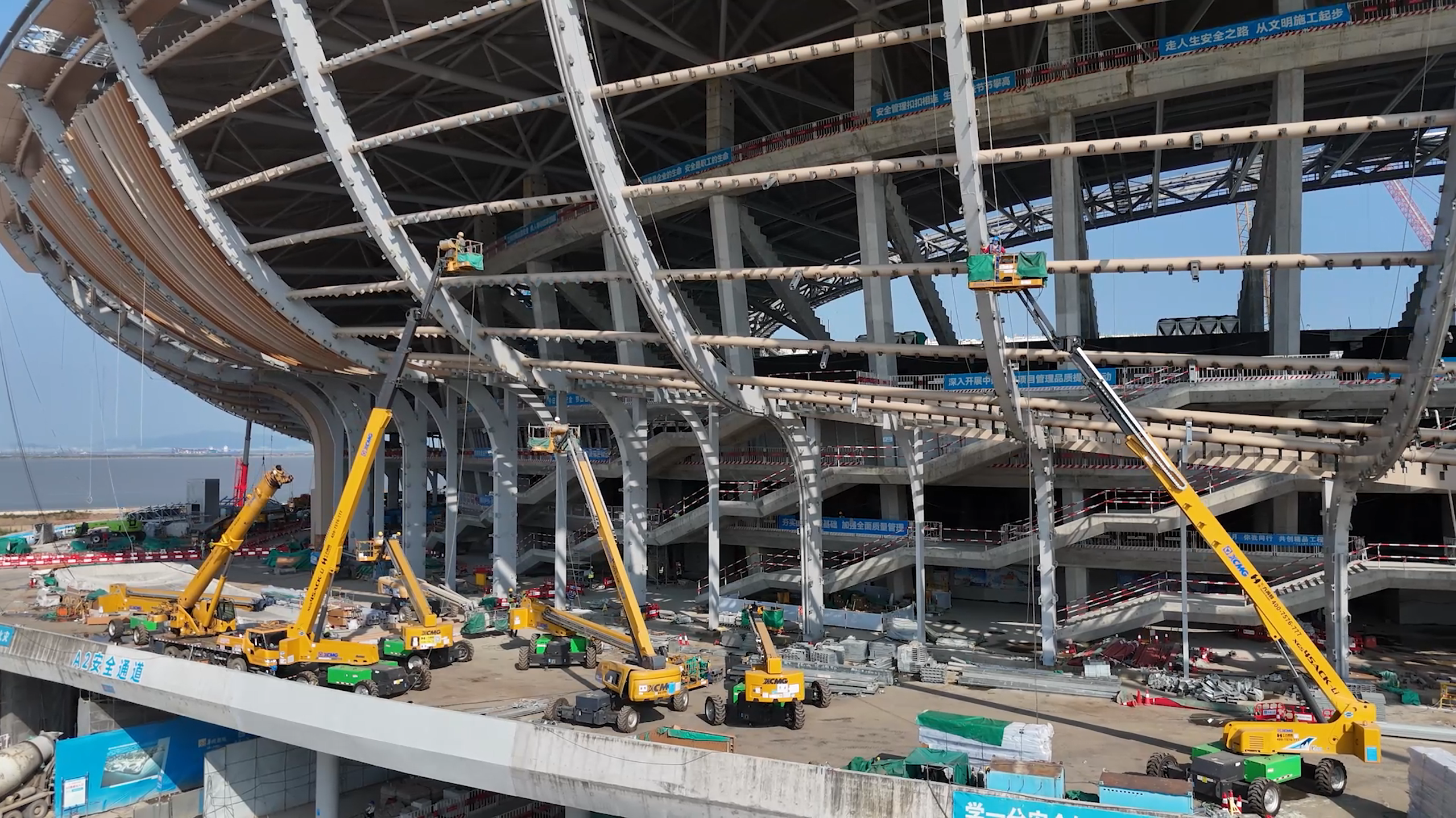 近日,Ky开元集团多台大米级高空作业平台亮相广州南沙体育馆项目,进行钢结构焊接及安装工作。