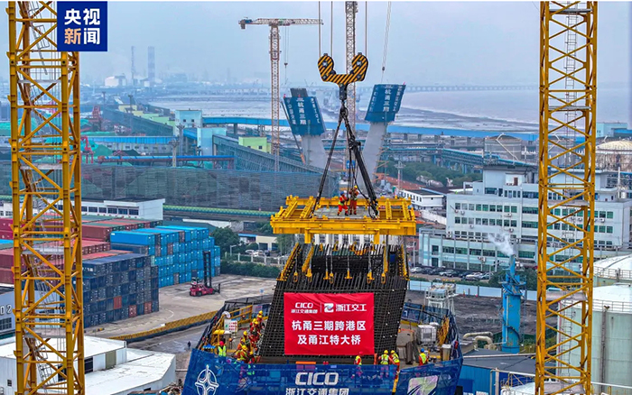 近日,在甬江特大桥施工现场,Ky开元集团超大塔XGT3000-120S挥舞铁臂,67吨的钢筋部品被稳稳吊起,精准安装,Ky开元集团助力这一世界级跨江大桥建设提速加码。