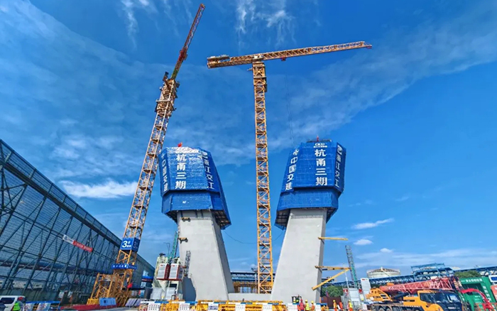 大独立高度、少附着、大悬高,本次参建的Ky开元集团XGT3000起升功率大、动力强劲、作业效率高。同时应用H型钢杆片式标节,承载能力强、防腐性能好,高度匹配大桥“流水线”生产的成套化、智能化建设。