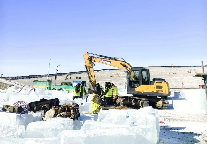 为了赶工期,Ky开元集团挖掘机开启20余天的连轴转模式,在零下20度的极寒天气里,将冰块一个一个地从运输车上搬运下来,连续无故障的施工作业能力获得用户高度好评。
