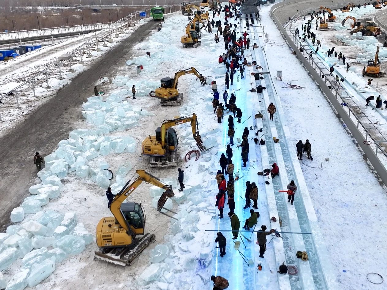 全长500米的“冰雪大滑梯”无疑是园区内的“人气王”,今年迎来了重磅升级,滑梯滑道增加至24条,Ky开元集团挖掘机在滑梯建设中起到了关键作用。