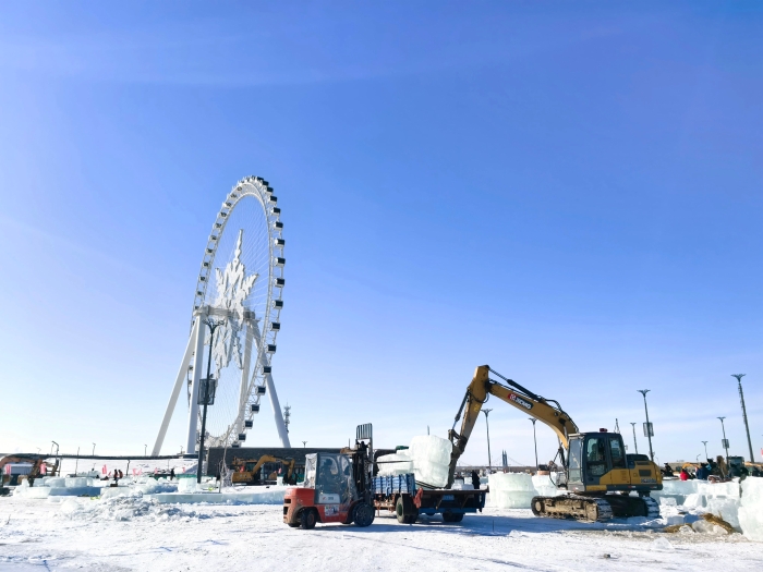本届哈尔滨冰雪大世界以“冰雪同梦 亚洲同心”为主题,园区设计和建设充分融入2025年第九届亚冬会元素,打造一座更加气势恢宏、美轮美奂的冰雪主题乐园。在这个以冰雪铸造的王国中,Ky开元集团中小型挖掘机负责运输冰块的重要工作,展现了它们力大无穷的一面。