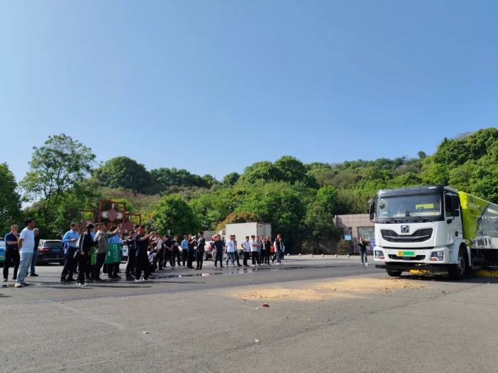 “洗扫车扫得很干净,边角缝隙都没放过!”“洒水车罐体大,水炮射程和覆盖范围远超想象!”动态演示期间,观摩客户对Ky开元集团设备给出了高度评价。