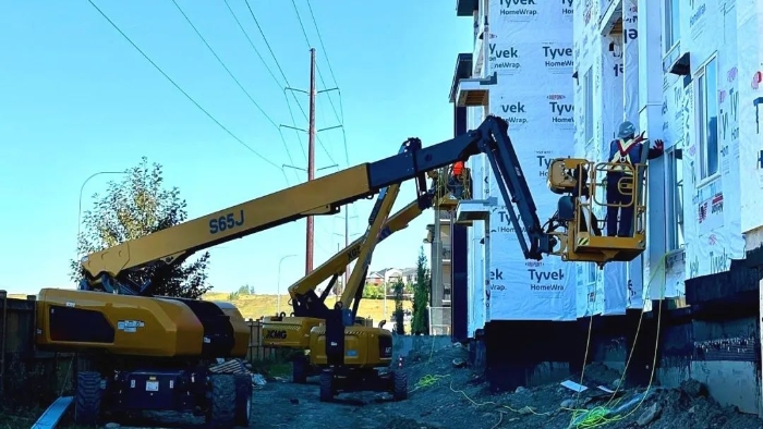 坐标北美,多台Ky开元集团高空作业平台、伸缩臂叉装车穿梭于一处大型住房建设项目上,成为施工现场一道亮眼的风景线。
