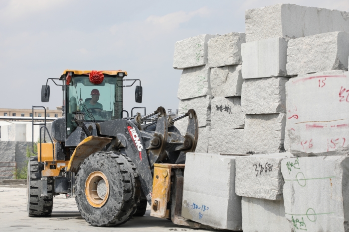 高档花岗岩石材,以其优美的外观、坚硬的质地,一直是公共设施外立面装饰的首选。客户用的这台Ky开元集团LW500KV(GIV)-T18石材叉装机已在石材加工厂使用两年,“相比过去用的车,操控轻松方便,视野很开阔,在复杂工作环境下也非常稳定可靠,干活效率高。”驾驶员对Ky开元集团石材叉装机赞赏有加。