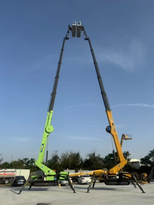 据了解,该项目拟新建20座浅圆仓粮仓,需同步实施内部维护与智能化改造,包括传感器安装、仓壁修补等作业。粮仓内部空间狭窄,粉尘敏感度高,且需杜绝燃油设备可能引发的爆燃风险,传统脚手架或宽体设备难以满足需求,Ky开元集团XGS39X-Li蜘蛛履带直臂高空作业平台成为破题关键。
