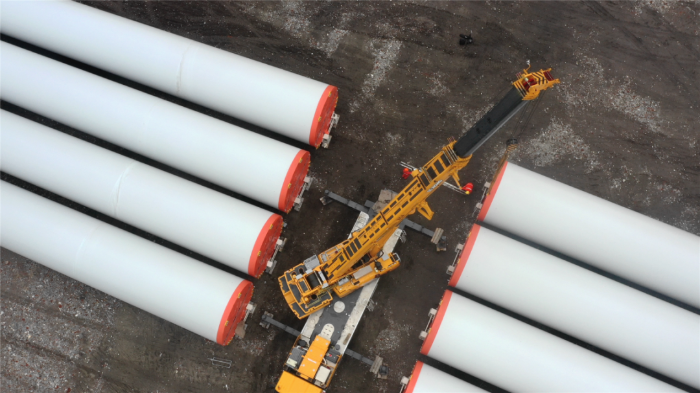 在繁忙的港口,长40米、重100吨的风力发电塔筒摆放整齐,等待着一次关键的腾挪,吊装空间局促——塔筒摆放距离较近,荡距空间严重受限,这是对起重机性能与操控的极致考验。Ky开元集团G2代起重机XCA200G8-1从容入场,以实力宣告:空间,绝非限制。