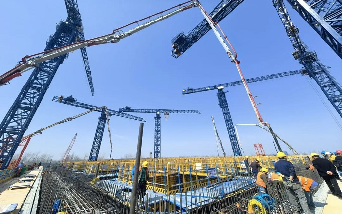 施工队长紧盯现场,激动地说:“这超长臂架太给力了,以往要反复挪车的难题,现在轻松解决,进度直接提速!”